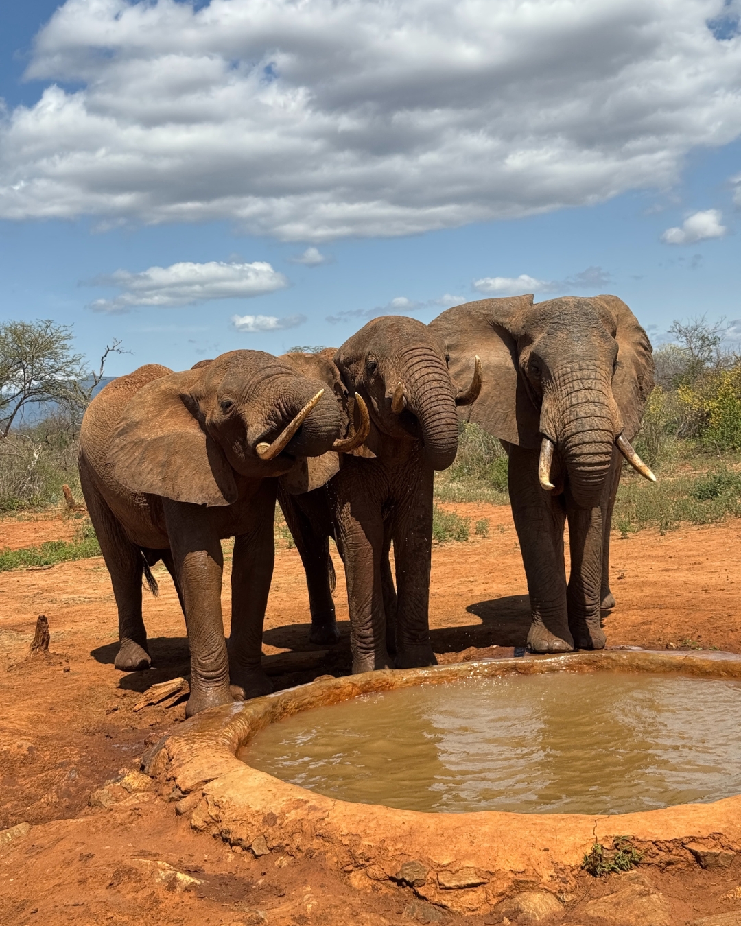 Für uns steht jetzt ein Besuch des Tsavo West Nationalpark auf dem Programm. Auch hier wird schnell klar, dass eine Reise mit Secluded Africa weit mehr als eine außergewöhnliche Safari-Erfahrung bietet. Der Trust hilft, wo er kann. Die Dürre ist für die Tiere eine große Herausforderung. Die extra installierten Wasserstellen sorgen für die nötige Entlastung. Mit unserem Guide Mustafa warten wir in unserem Jeep direkt vor einem der Wasserlöcher, das gerade erst mittels Traktor aufgefüllt wurde, auf Tiere.